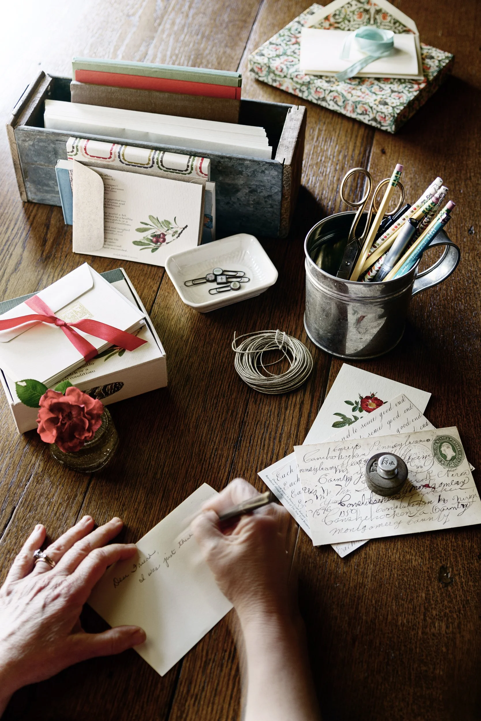 In my home, we race to see who can get to the mail first. Even though the mail is mostly junk, we live for the days when the mail has real handwritten letters and cards for us. We recall with joy the college acceptance letters, with solace the cards that came when my father passed away, and with gratitude the notes of encouragement that arrived when cancer made itself at home with us. Delivered directly to me by the Postal Service, thank-you’s and invitations along with postcards and letters keep me in good company. The miles between are dissolved by the simple act of raising the flag for outgoing mail.