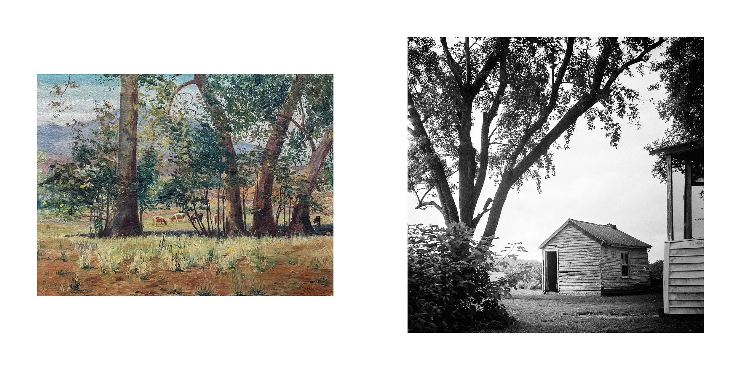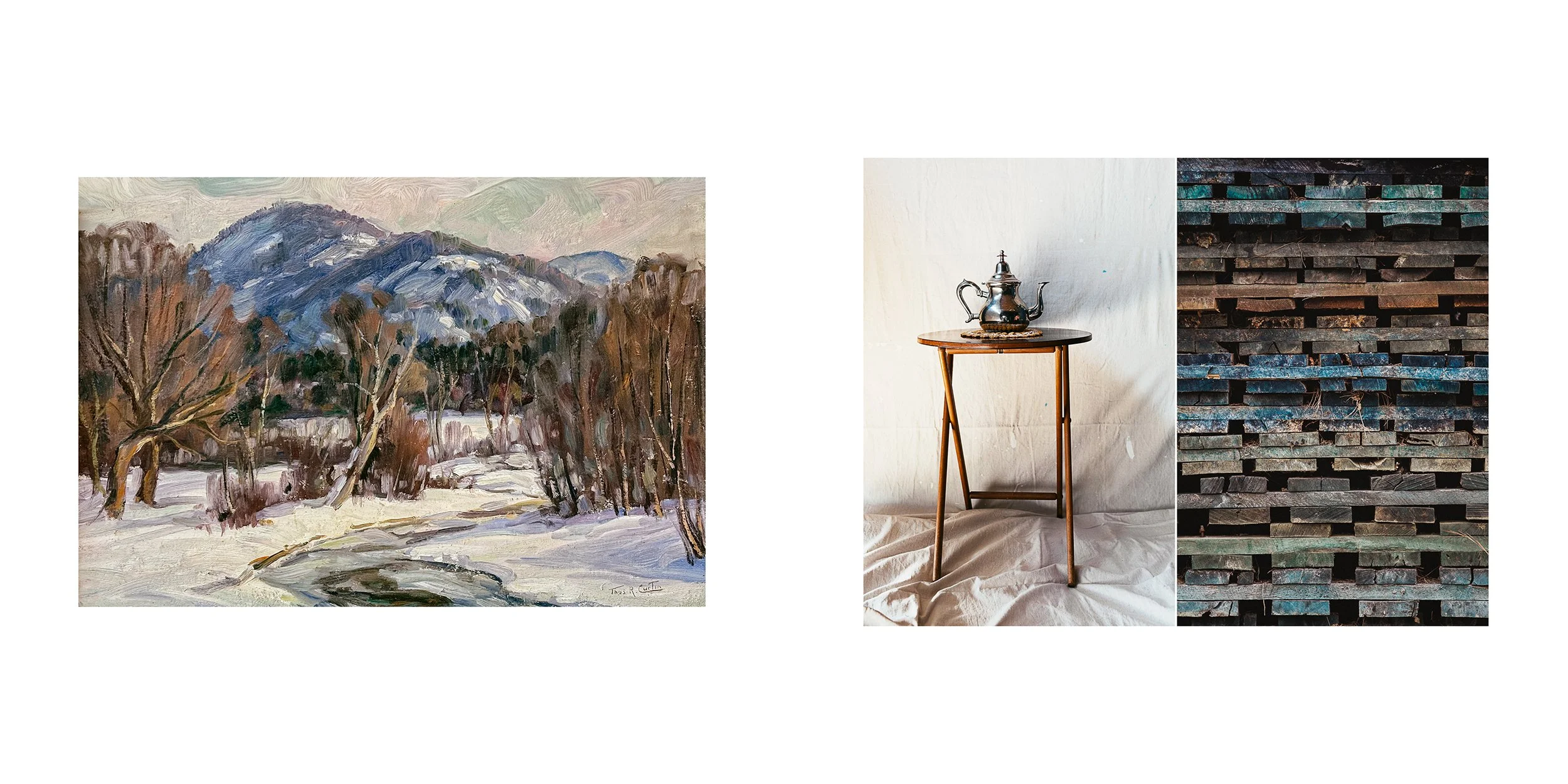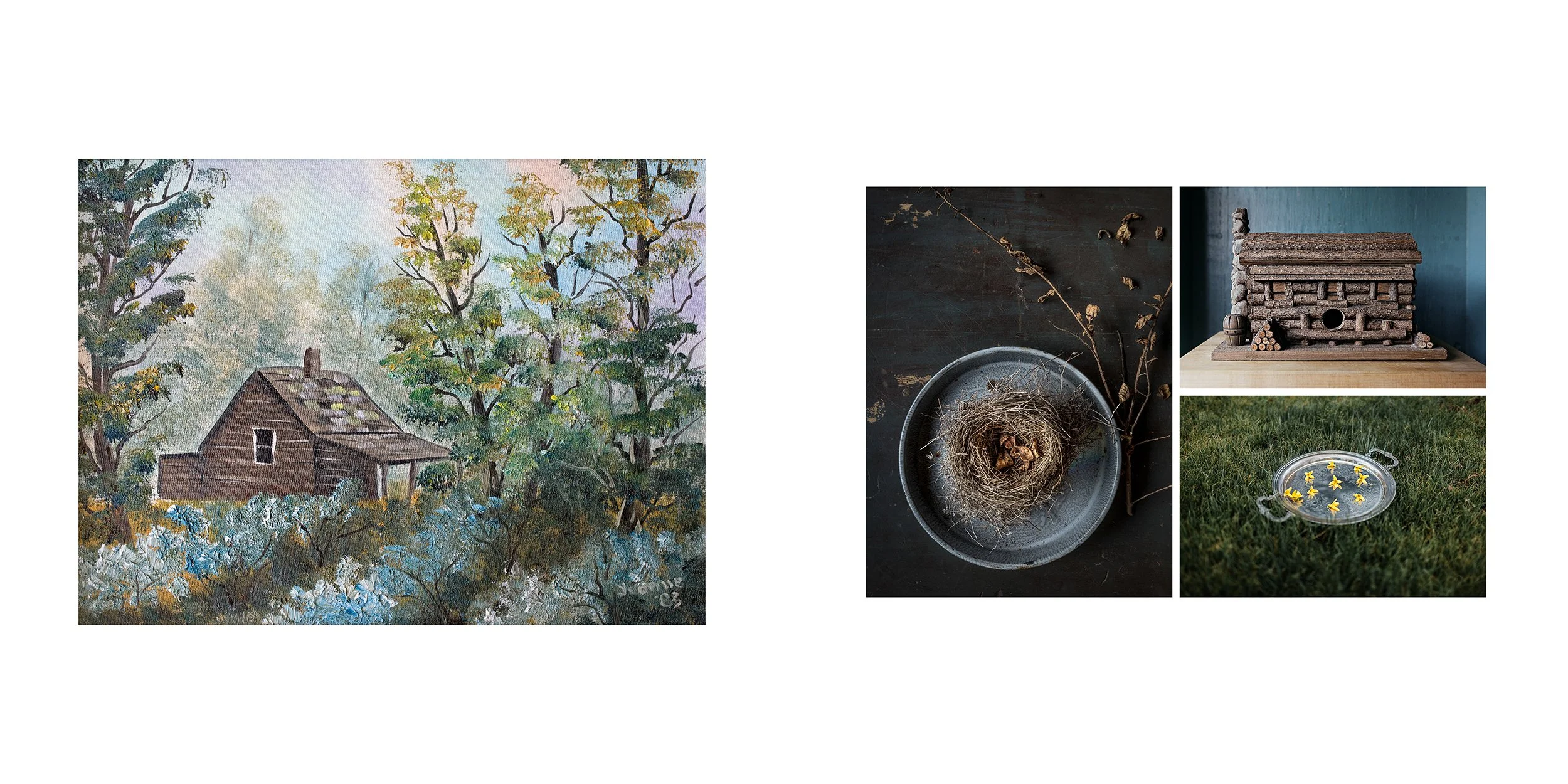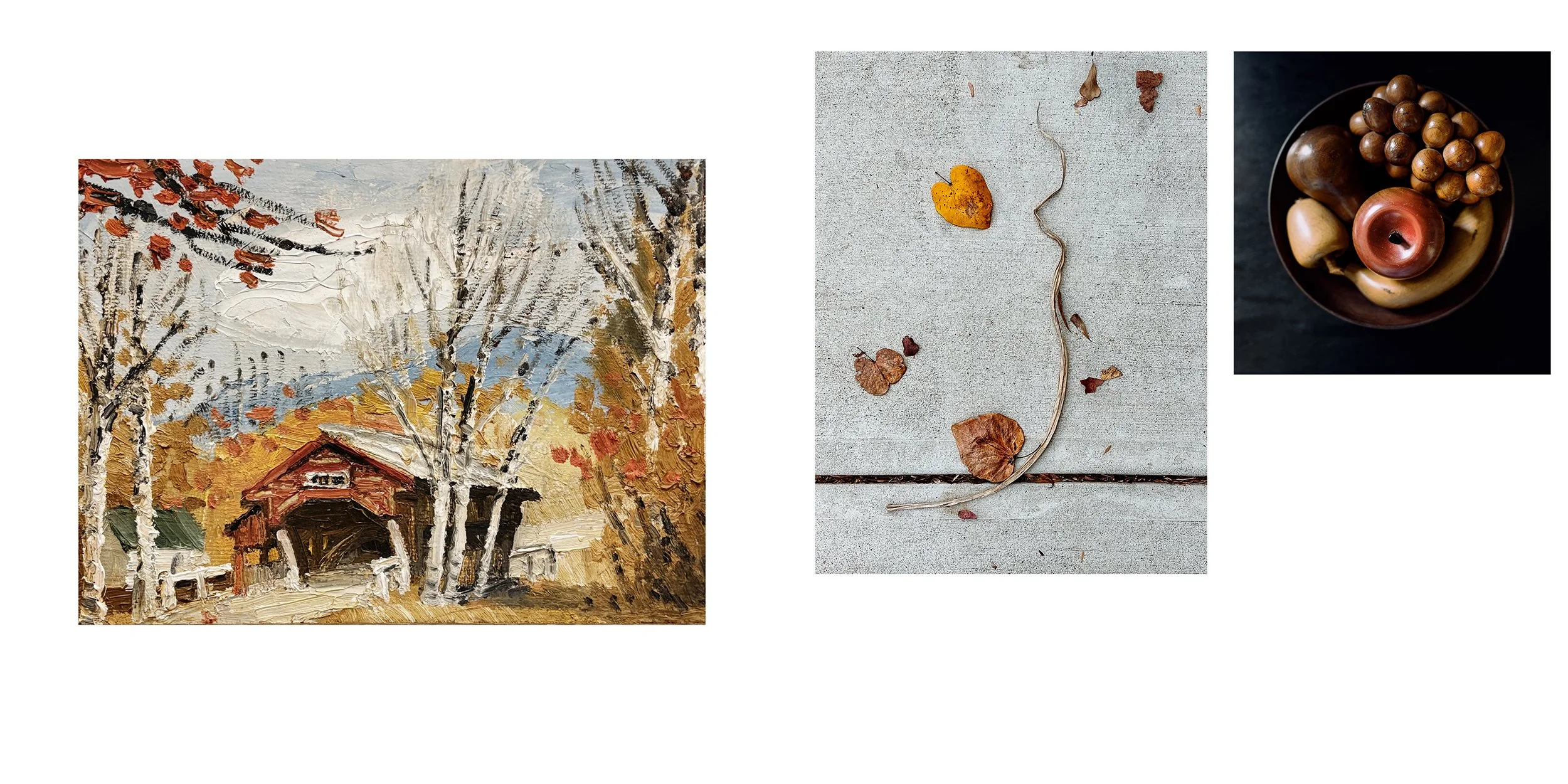 The project is centered around a collection of vintage landscape paintings found at local thrift shops and antique malls. Some of the paintings are signed and dated, and every effort was made to credit the artist. But many are not signed—leaving the authorship a mystery. The paintings share some common contexts. Most are of rural landscapes, and all reflect a deep connection to natural environments. Many feature cabins or old homesteads, winding paths, ponds, bridges, fences of one kind or another. The paintings are spread across the four seasons. Many share similar color palettes and all are oil paintings. I endeavored to photograph the paintings with accurate representations of color and brush strokes. In every case, my goal was to witness and honor the original paintings.