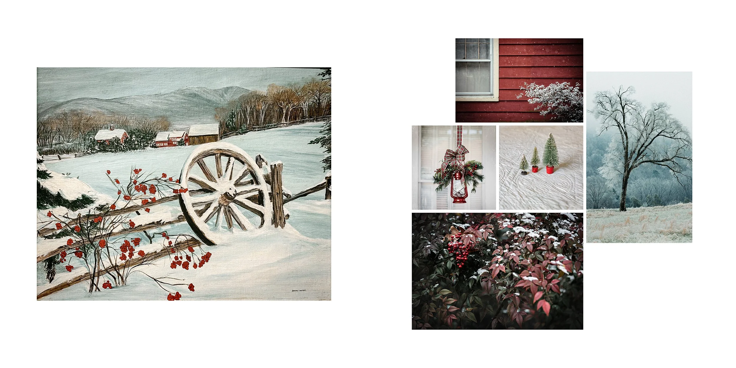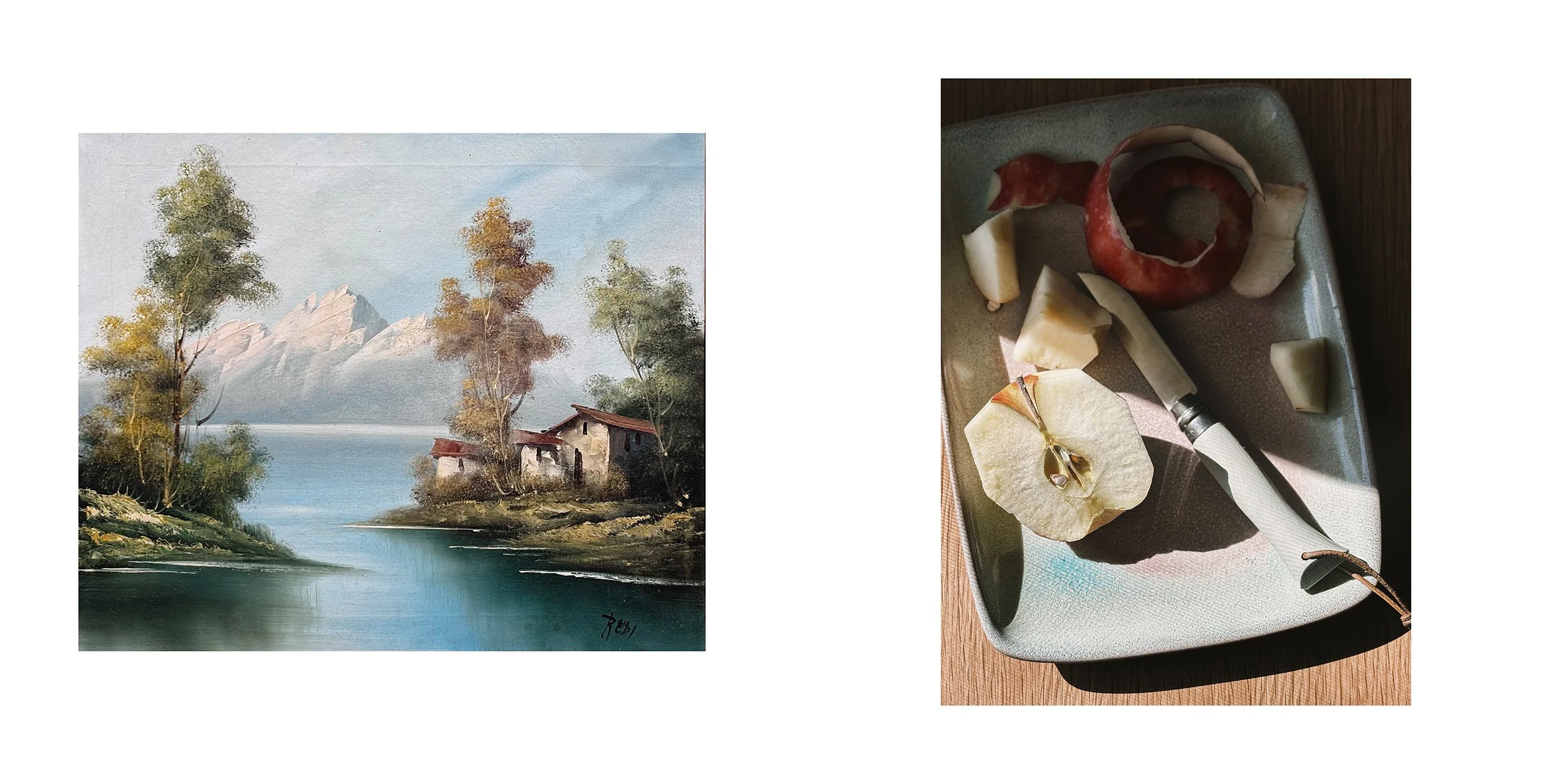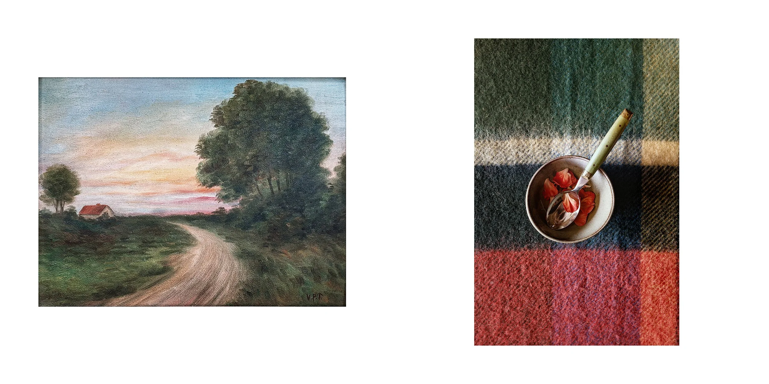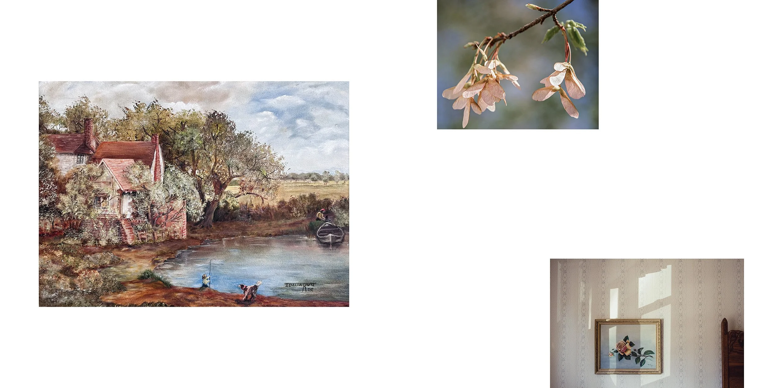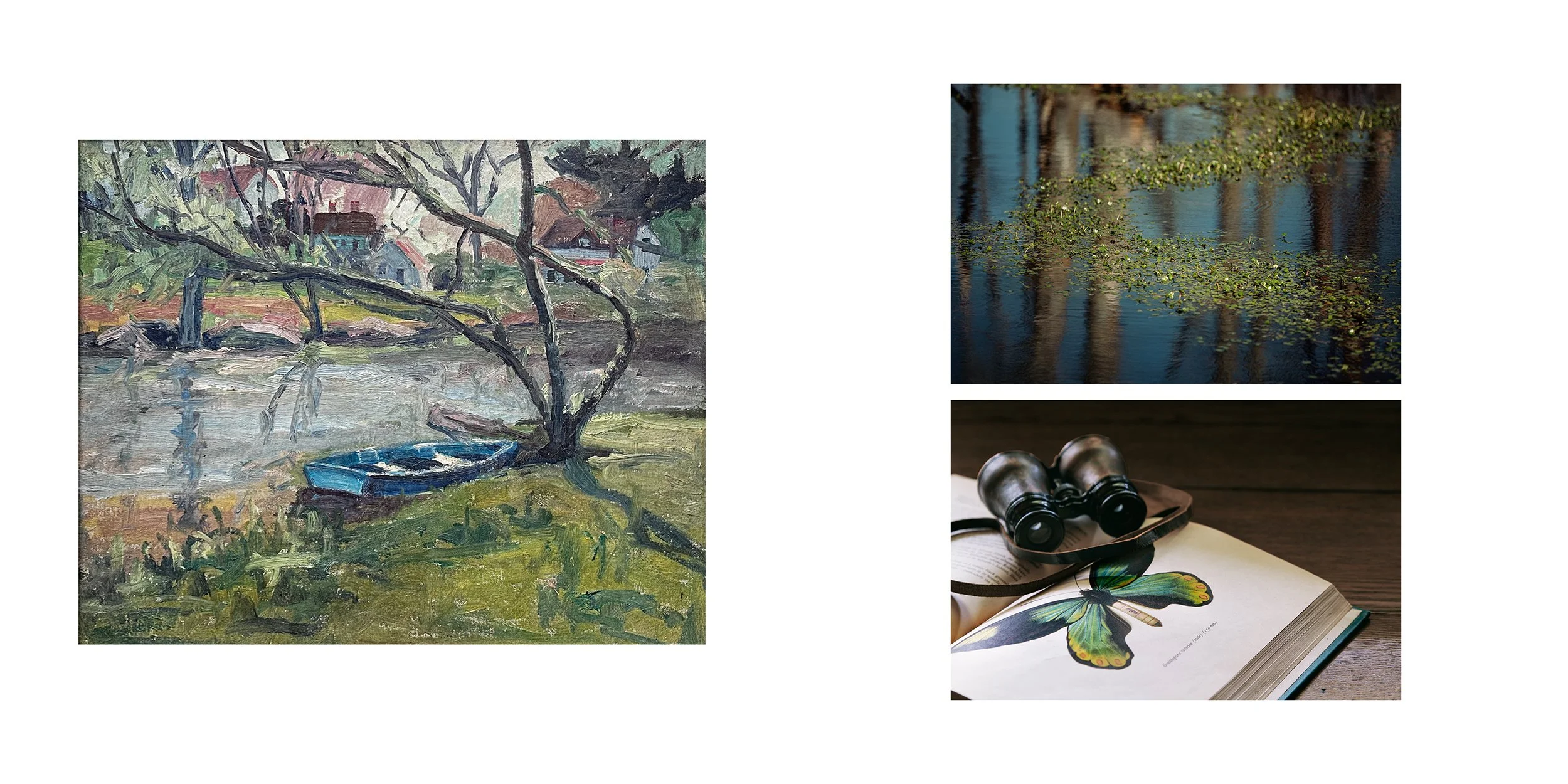 The project is centered around a collection of vintage landscape paintings found at local thrift shops and antique malls. Some of the paintings are signed and dated, and every effort was made to credit the artist. But many are not signed—leaving the authorship a mystery. The paintings share some common contexts. Most are of rural landscapes, and all reflect a deep connection to natural environments. Many feature cabins or old homesteads, winding paths, ponds, bridges, fences of one kind or another. The paintings are spread across the four seasons. Many share similar color palettes and all are oil paintings. I endeavored to photograph the paintings with accurate representations of color and brush strokes. In every case, my goal was to witness and honor the original paintings.