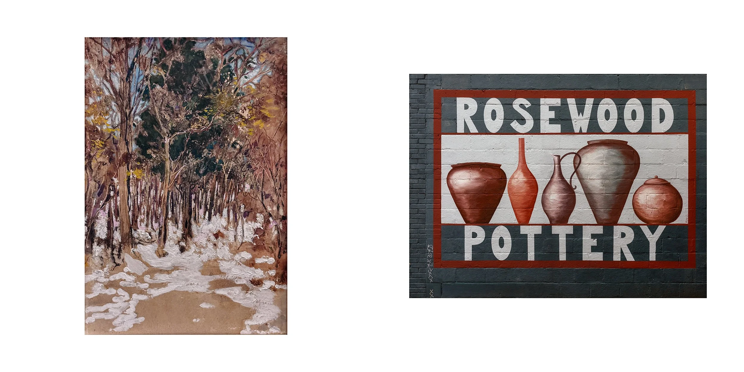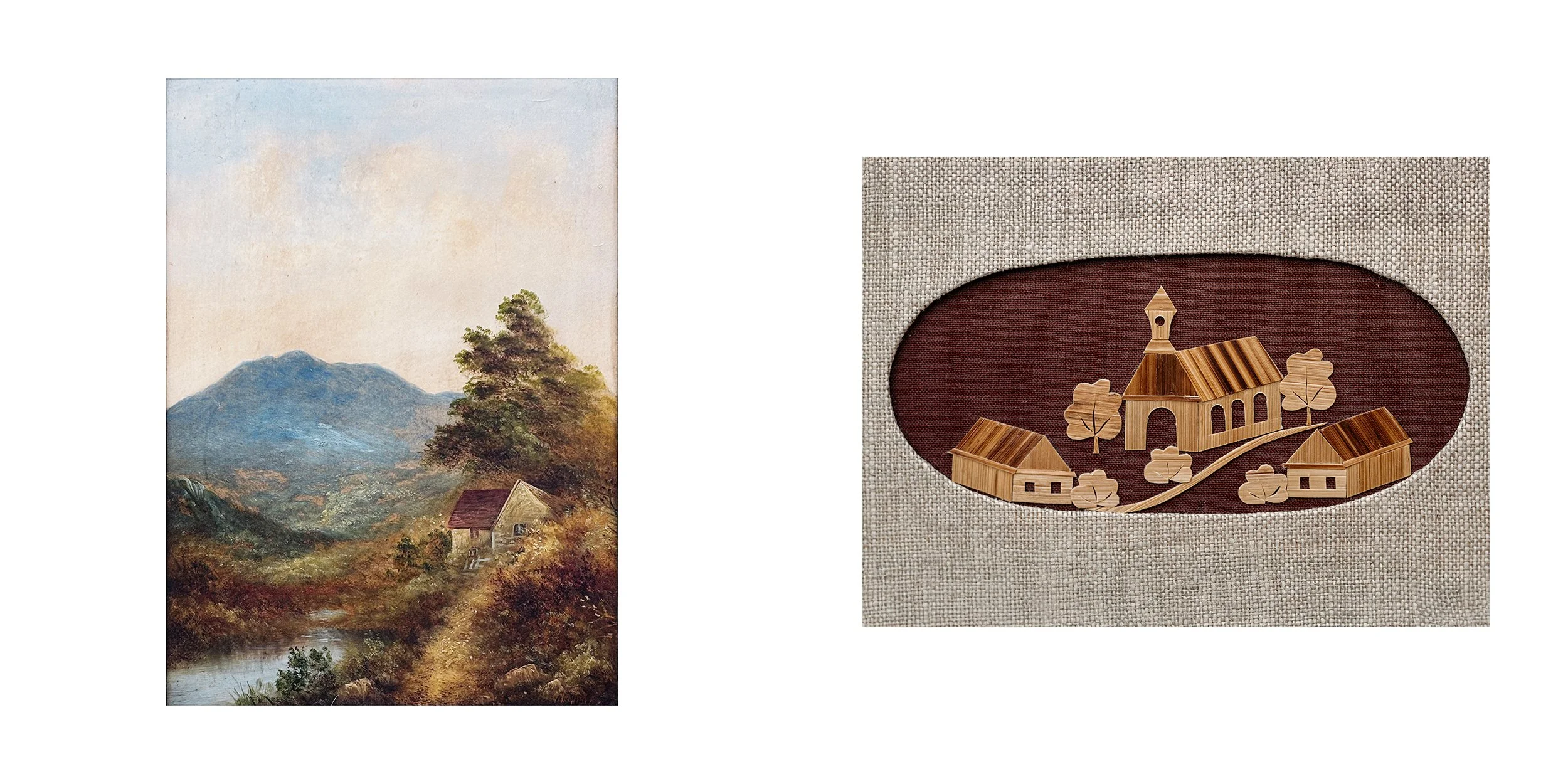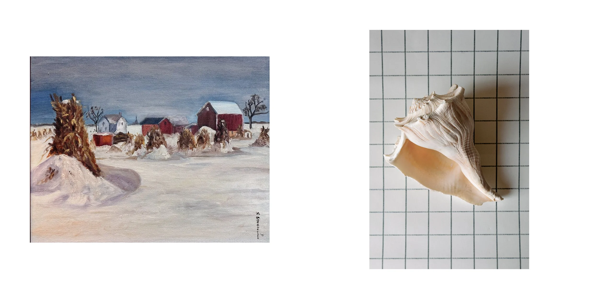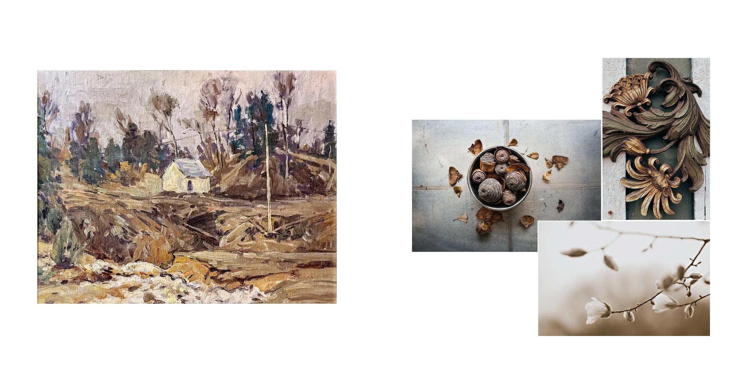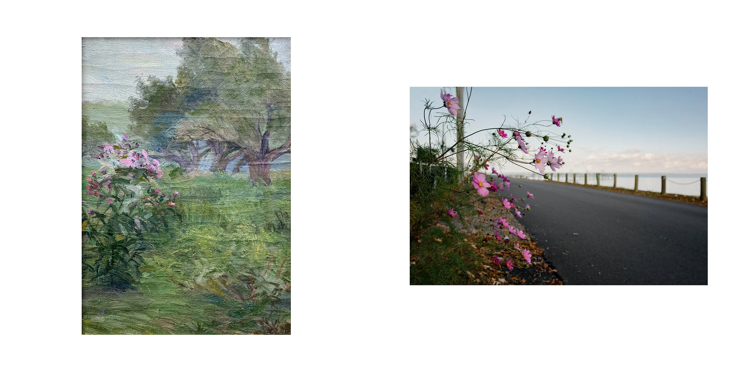 The project is centered around a collection of vintage landscape paintings found at local thrift shops and antique malls. Some of the paintings are signed and dated, and every effort was made to credit the artist. But many are not signed—leaving the authorship a mystery. The paintings share some common contexts. Most are of rural landscapes, and all reflect a deep connection to natural environments. Many feature cabins or old homesteads, winding paths, ponds, bridges, fences of one kind or another. The paintings are spread across the four seasons. Many share similar color palettes and all are oil paintings. I endeavored to photograph the paintings with accurate representations of color and brush strokes. In every case, my goal was to witness and honor the original paintings.