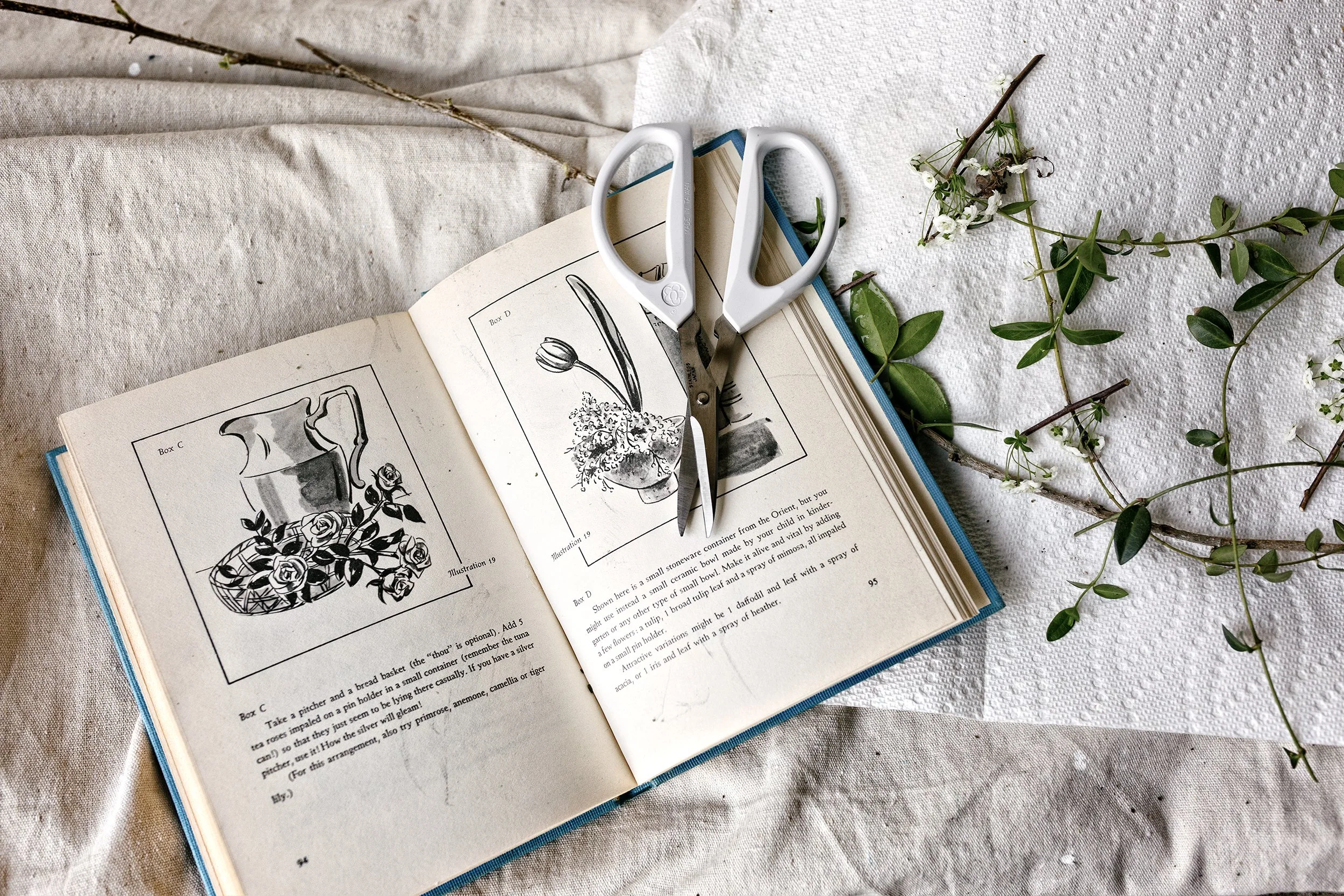 Illustration 19, Box D, page 95 from FLOWER ARRANGING by number, By Peggy Boehm and Shizu Matsuda (Gramercy Publishing, New York, 1961).